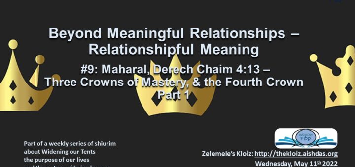 The Beyond Meaningful Relationships – Relationshipful Meaning series at the kloiz meets on Wednesday nights at 8pm EDT. If you missed anything or just want to join mid-stream, there are always the posts in...